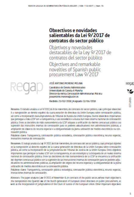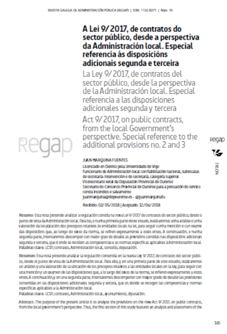 A Lei 9/2017, de contratos do sector público, desde a perspectiva da Administración local. Especial referencia ás disposicións adicionais segunda e terceira
