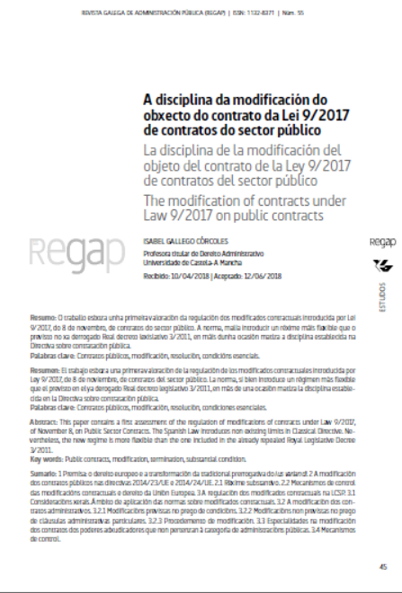 A disciplina da modificación do obxecto do contrato da Lei 9/2017 de contratos do sector público