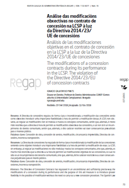 Análise das modificacións obxectivas no contrato de concesión na LCSP á luz da Directiva 2014/23/ UE de concesións