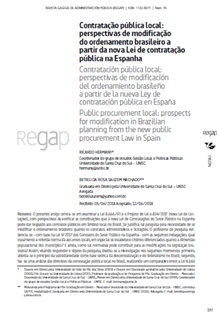Contratação pública local: perspectivas de modificação do ordenamento brasileiro a partir da nova Lei de contratação pública na Espanha