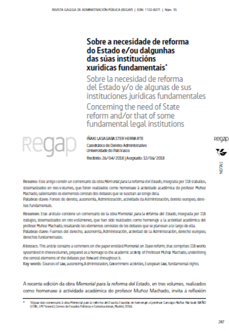 Sobre a necesidade de reforma do Estado e/ou dalgunhas das súas institucións xurídicas fundamentais