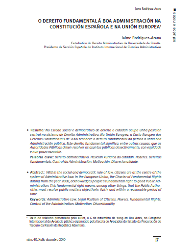 O dereito fundamental á boa administración na constitución española e na Unión Europea