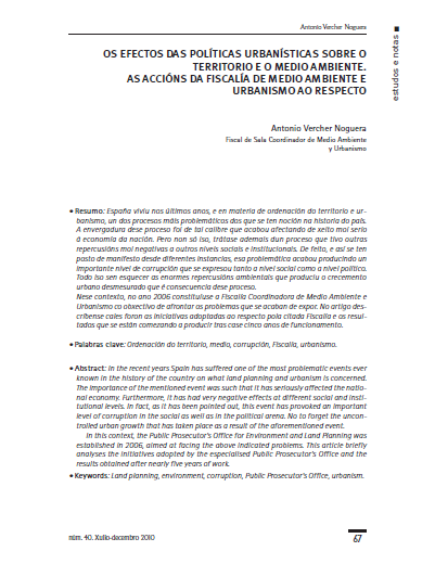 Os efectos das políticas urbanísticas sobre o territorio e o medio ambiente. As accións da fiscalía de medio ambiente e urbanismo ao respecto
