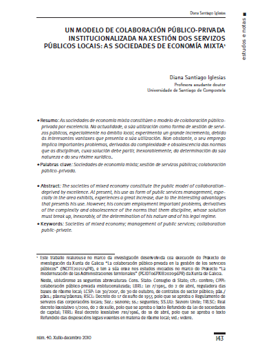 Un modelo de colaboración público-privada institucionalizada na xestión dos servizos públicos locais: as sociedades de economía mixta