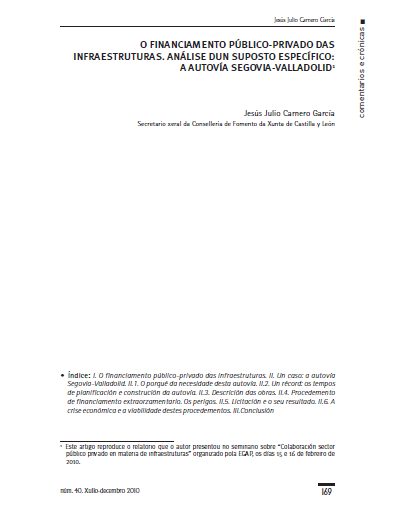 O financiamento público-privado das infraestruturas. Análise dun suposto específico: a autovía Segovia-Valladolid