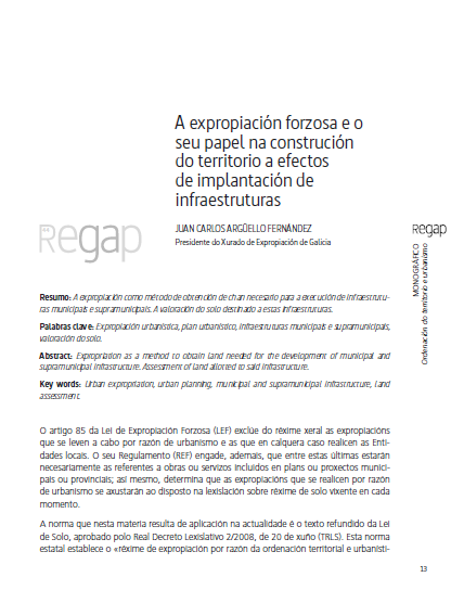 A expropiación forzosa e o seu papel na construción do territorio a efectos de implantación de infraestruturas