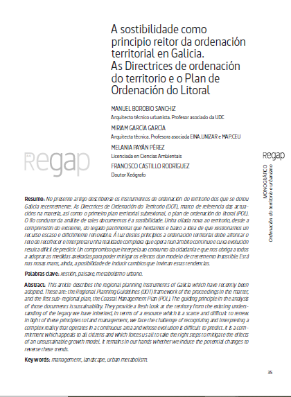 A sostibilidade como principio reitor da ordenación territorial en Galicia. As Directrices de ordenación do territorio e o Plan de Ordenación do Litoral
