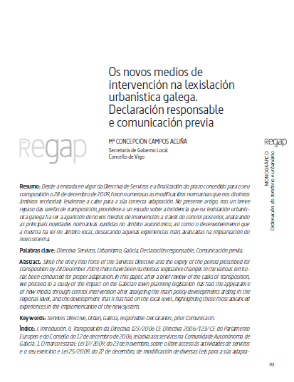 Os novos medios de intervención na lexislación urbanística galega. Declaración responsable e comunicación previa