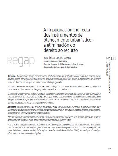 A impugnación indirecta dos instrumentos de planeamento urbanístico: a eliminación do dereito ao recurso