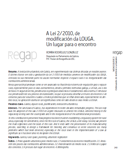 A Lei 2/2010, de modificación da LOUGA. Un lugar para o encontro