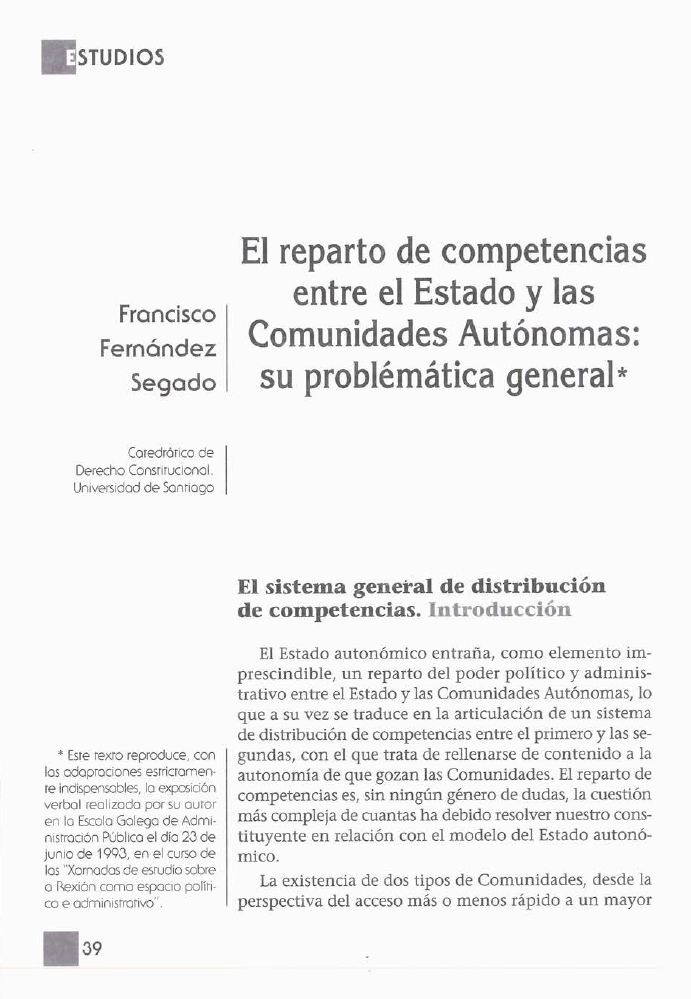 O reparto de competencias entre o Estado e as Comunidades Autónomas: a súa problemática en xeral