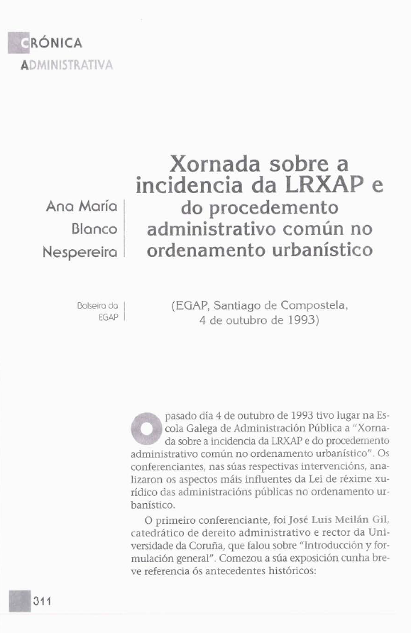 Xornada sobre a incidencia da LRXAP e do procedemento administrativo común no ordenamento urbanístico