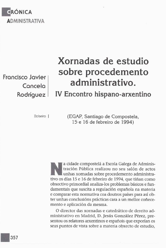 Xornadas de estudio sobre procedemento administrativo. IV Encontro hispano-arxentino