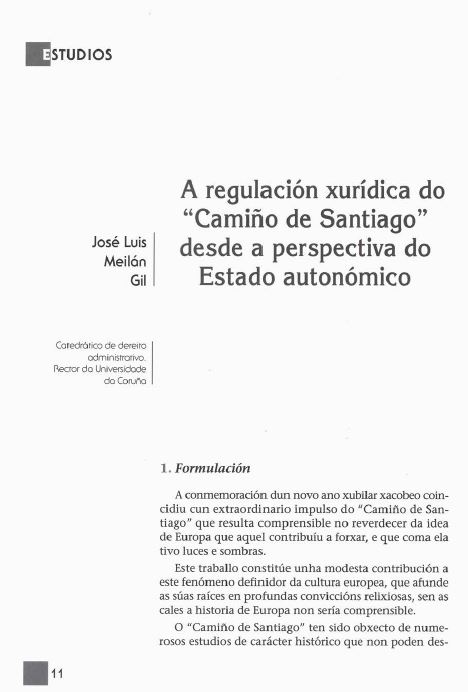 A regulación xurídica do "Camiño de Santiago" desde a perspectiva do Estado autonómico