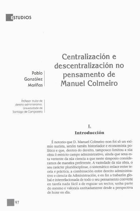 Centralización e descentralización no pensamento de Manuel Colmeiro