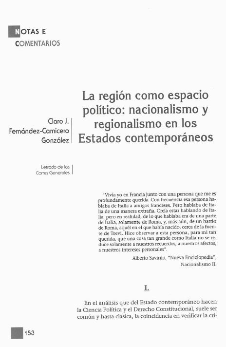 A rexión como espazo político: nacionalismo e rexionalismo nos Estados contemporáneos