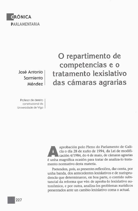 O repartimento de competencias e o tratamento lexislativo das cámaras agrarias