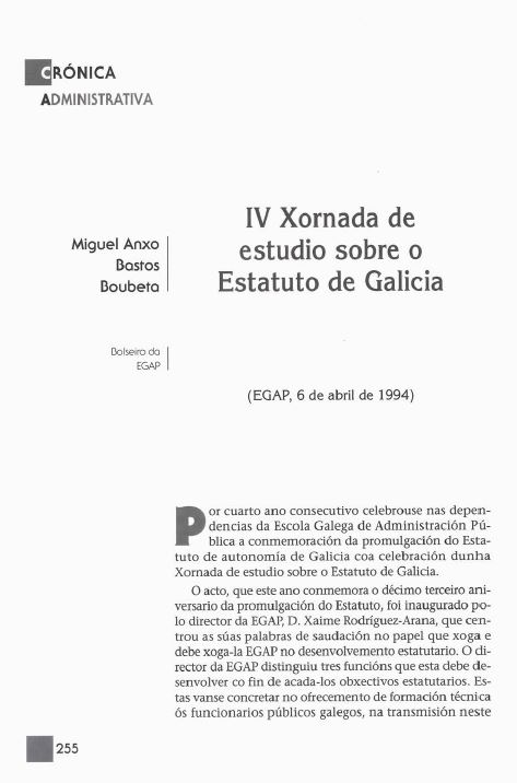 IV Xornada de estudio sobre o Estatuto de Galicia