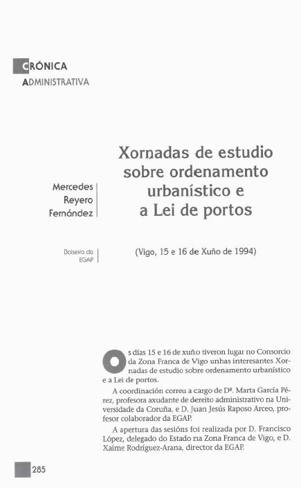 Xornadas de estudio sobre ordenamento urbanístico e a Lei de portos