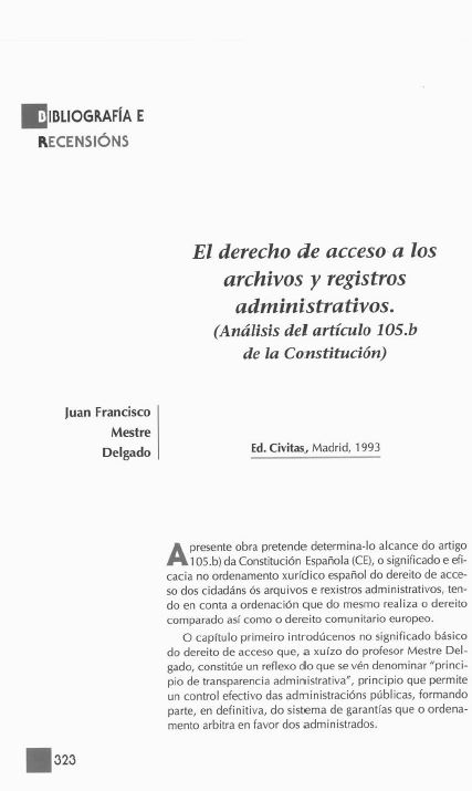 O dereito de acceso aos arquivos e rexistros administrativos. (Análise do artigo 105.b da Constitución)