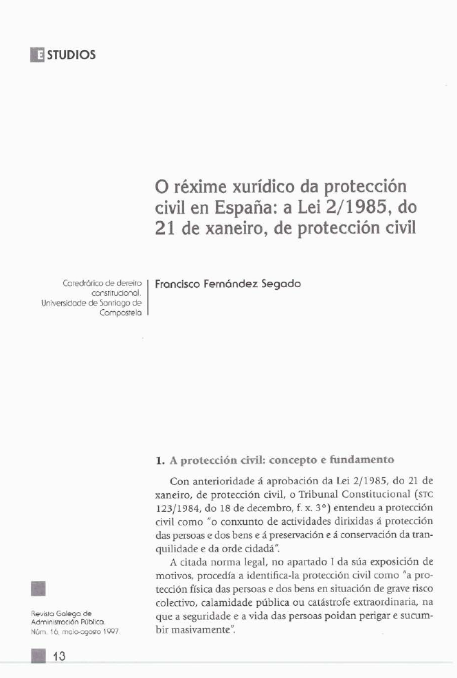 O réxime xurídico da protección civil en España: a Lei 2/1985, do 21 de xaneiro, de protección civil