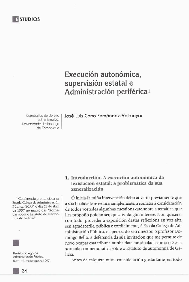 Execución autonómica, supervisión estatal e Administración periférica