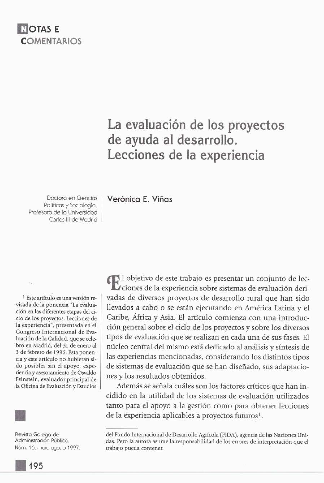 A evaluación dos proxectos de axuda ao desenvolvemento. Leccións da experiencia