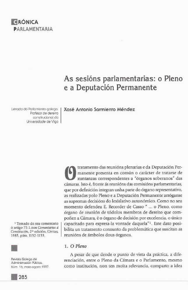 As sesións parlamentarias: o Pleno e a Deputación Permanente