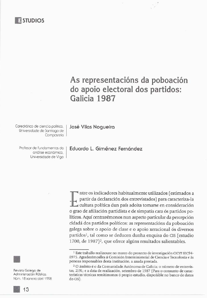 As representacións da poboación do apoio electoral dos partidos: Galicia 1987