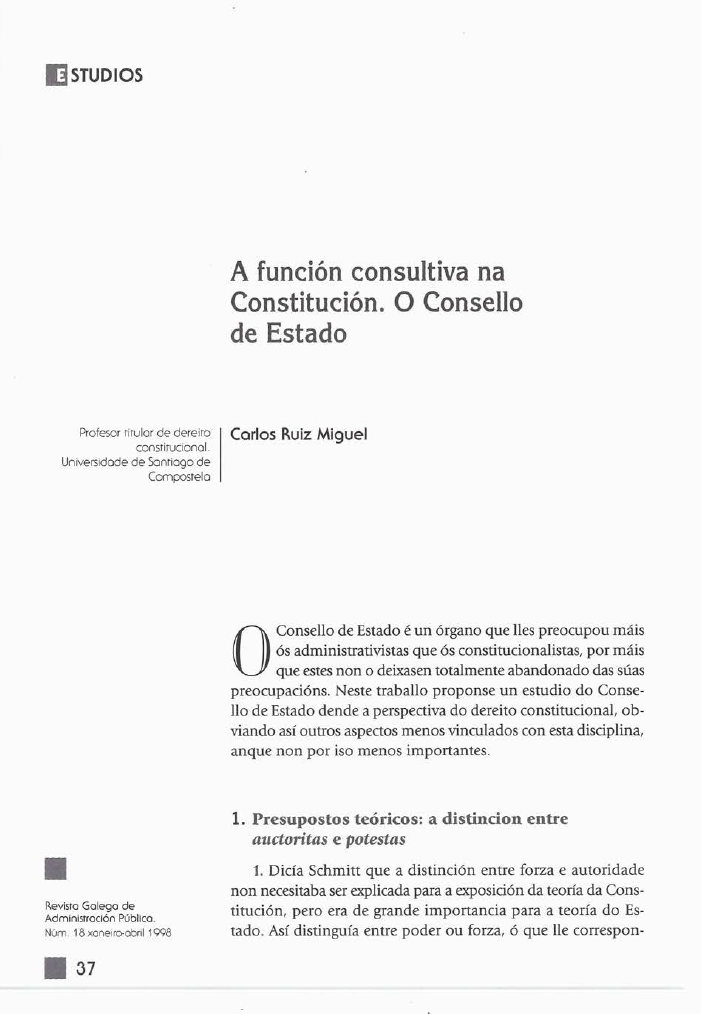 A función consultiva na Constitución. O Consello do Estado