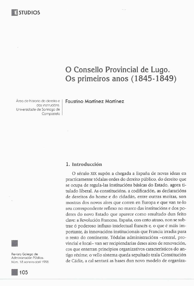 O Consello Provincial de Lugo. Os primeiros anos (1845-1849)