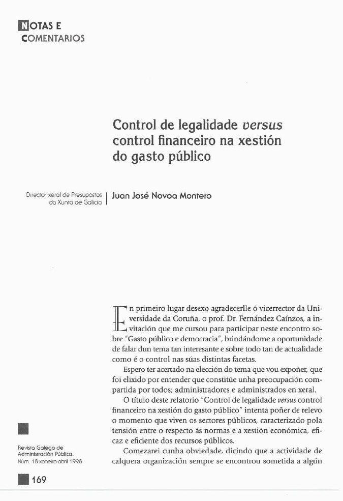 Control de legalidade versus control financeiro na xestión do gasto público