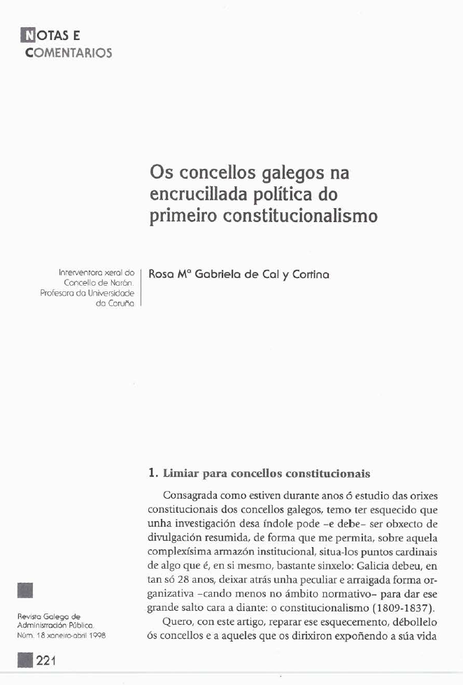 Os concellos galegos na encrucillada política do primeiro constitucionalismo