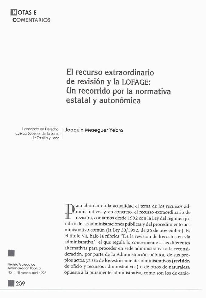 O recurso extraordinario de revisión e a LOFAGE: un recorrido pola normativa estatal e autonómica