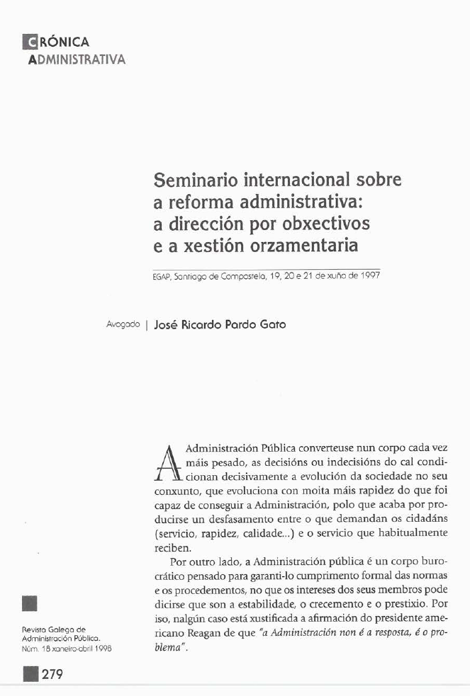 Seminario internacional sobre a reforma administrativa: a dirección por obxectivos e a xestión orzamentaria.
