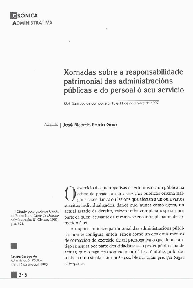 Xornadas sobre a responsabilidade patrimonial das administracións públicas e do persoal ó seu servicio.