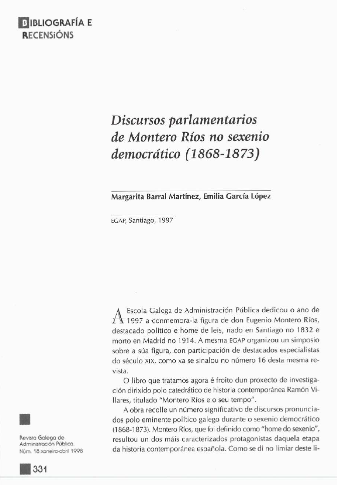 Discursos parlamentarios de Montero Ríos no Sexenio democrático (1868-1873)