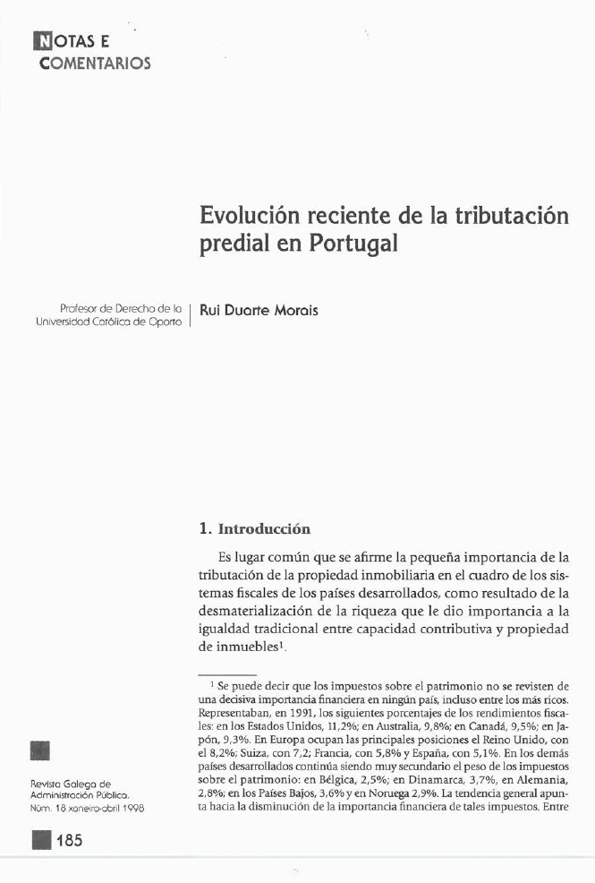 Evolución recente da tributación predial en Portugal
