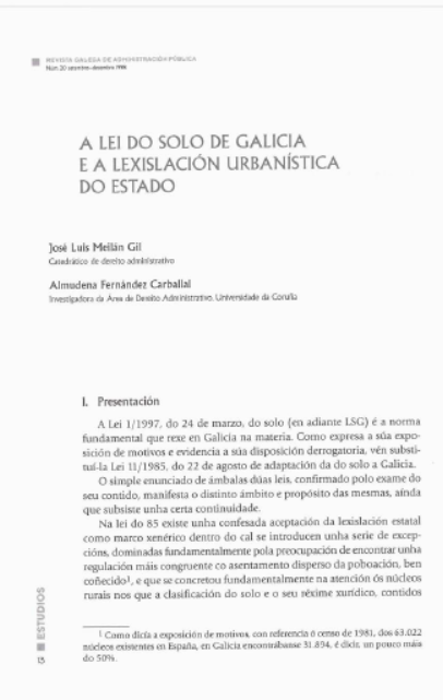 A lei do solo de Galicia e a lexislación urbanística do estado