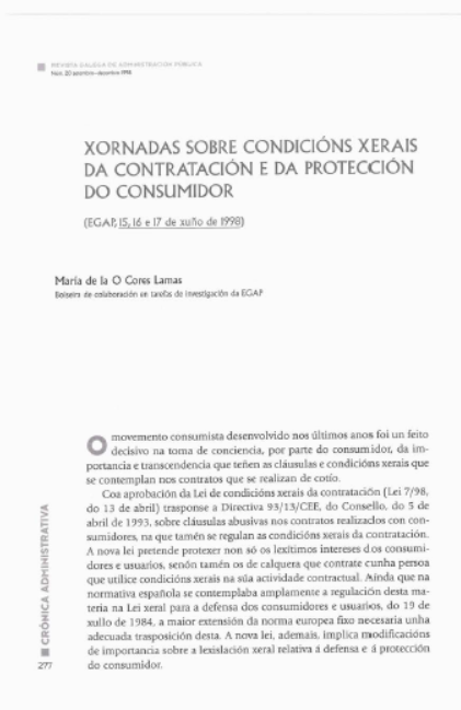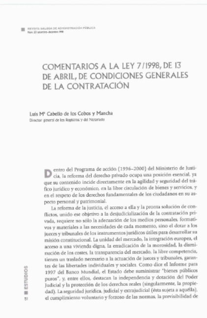 Comentarios á lei 7/1998, do 13 de abril, de condicións xerais de contratación