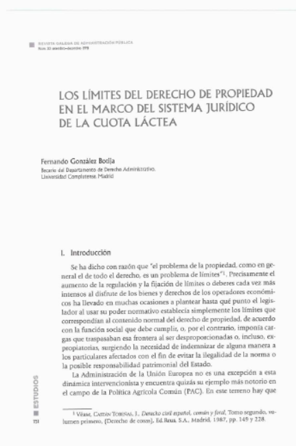 Os límites dos dereitos de propiedade dentro do ordenamento xurídico da cota láctea
