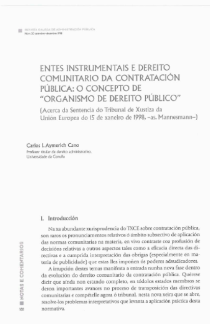 Entes instrumentais e dereito comunitario da contratación pública: o concepto de "organismo de dereito público"