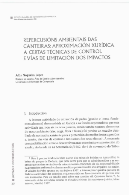 Repercusións ambientais das canteiras: aproximación xuridica a certas técnicas de control e vías de limitación dos impactos