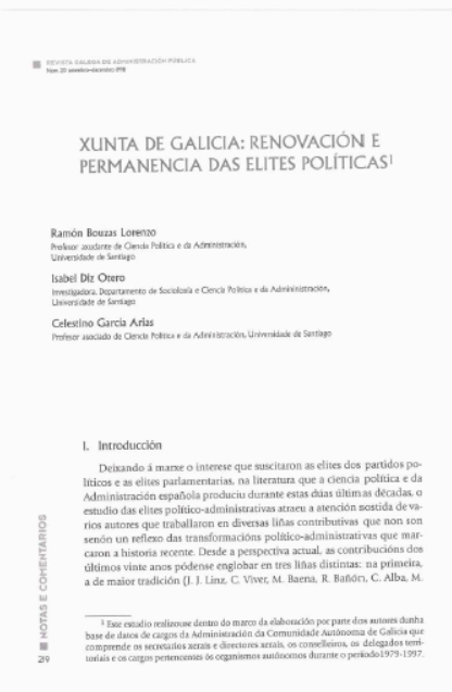 Xunta de Galicia: renovación e permanencia das elites politicas