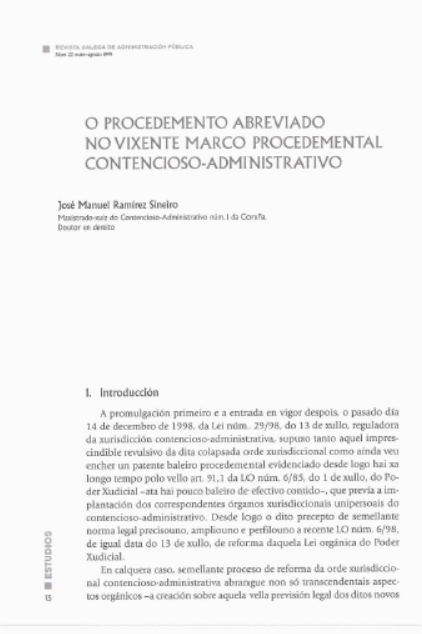 O procedemento abreviado no vixente marco procedemental contencioso-administrativo