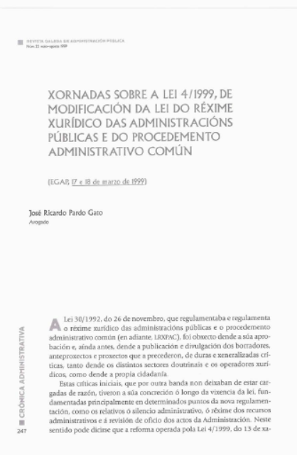 Xornadas sobre a le1 4/1999, de modificación da lei do réxime xurídico das administracións públicas e do procedemento administrativo común