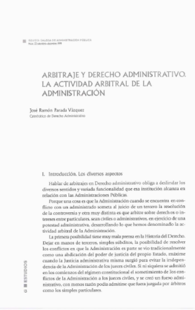 Dereito arbitral e administrativo. A actividade arbitral da administración