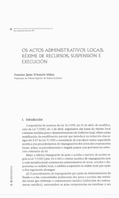 Os actos administrativos locais. Réxime de recursos, suspensión e execución