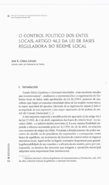 O control político dos entes locais. Artigo 46.2 da lei de bases reguladora do réxime local
