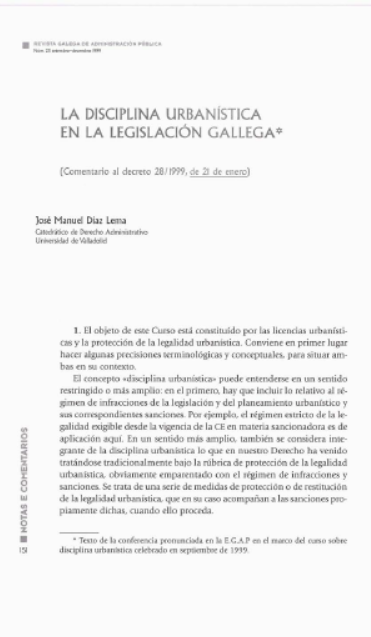A disciplina urbanística na lexislación galega